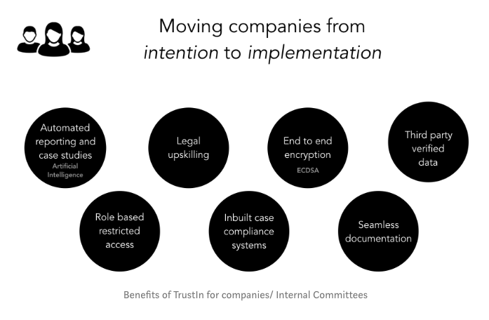 With best in class legal and tech frameworks, we’re empowering companies to implement a culture of safety, confidentiality, and compliance, personalised for their company's POSH policy and safety processes.